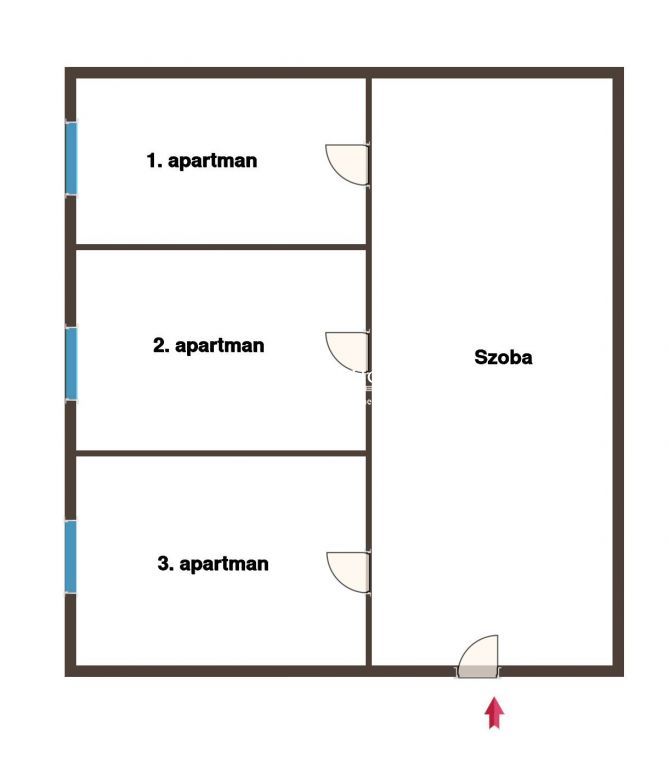 Funkció: Jelenleg egybenyitott térként funkcionál, de gyorsan átalakítható 3 önálló apartmanná vagy visszaalakítható nagyvonalú lakássá