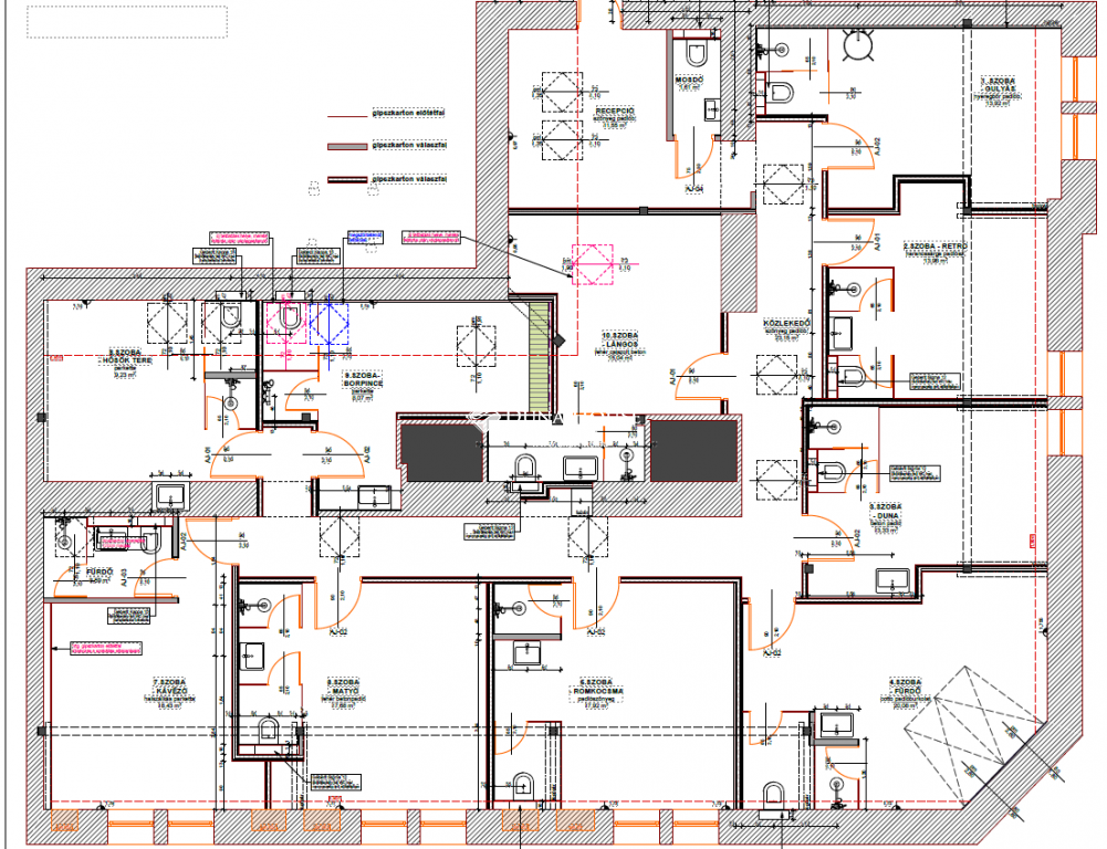 Az ingatlanban 10 szoba található, elrendezése kiváló. Minden szobához tartozik külön zuhanyzó és WC, modern kártyás a beléptető rendszer. Az összes lakóegység klímás.