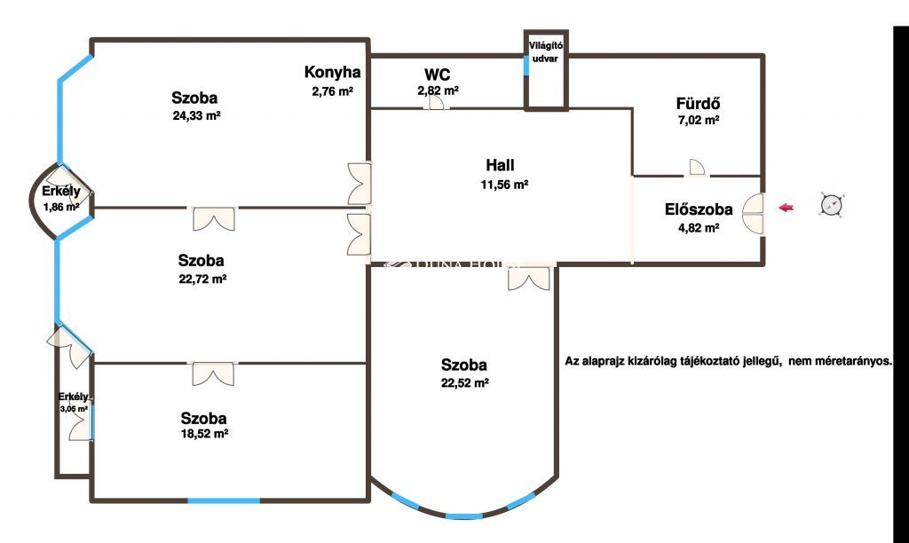 - Két erkély egyik az utcára, másik a csendes udvarra nyílik, természetes fényt és friss levegőt biztosítva