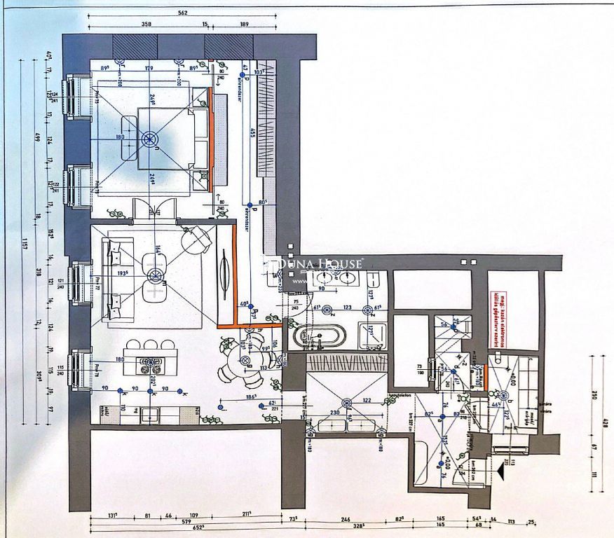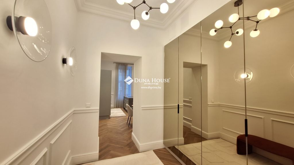 A magas minőségi kivitelezés, stukkók, és design lámpatestek mind egy egyedien elegáns hangulatot kölcsönöznek a lakásnak.