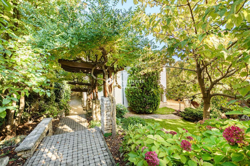 A házat körülölelő gondozott díszkert, a nagy üvegfelületeken át beáramló fény, valamint a teraszok és a télikert minden évszakban különleges atmoszférát teremtenek.