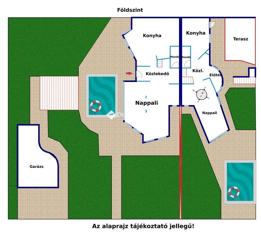 Az ingatlan 2 különálló villából áll (lehetőség van az összevonásukra), és egy lakásból a személyzet vagy vendég számára.