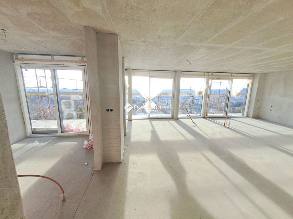 Teraszmérete 57 m2, ca. 100 m2 oldalkert is tartozik hozzá.