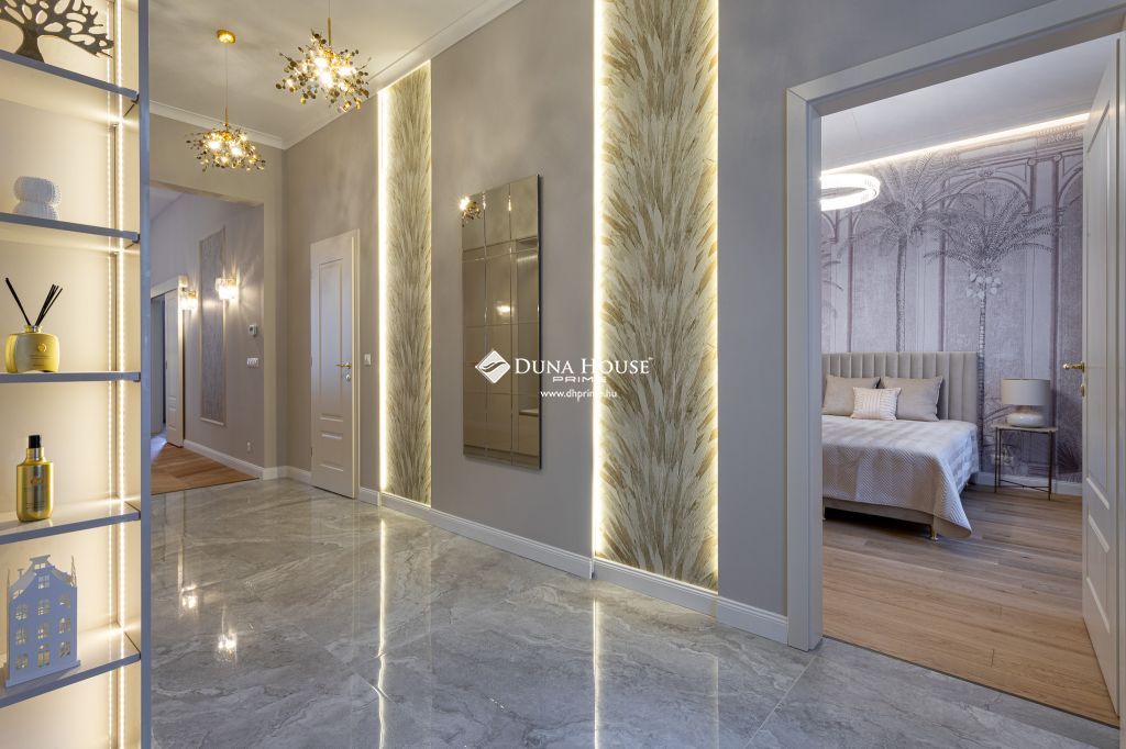 Az ingatlan prémium minőségű felújításon esett át, melynek során a legkiválóbb minőségű anyagokat használták fel, a lakás minden részletében az eleganciát tükrözi. Designer csillárok, beépített szekrények, minőségi szaniterek és prémium burkolatok kerültek beszerelésre.